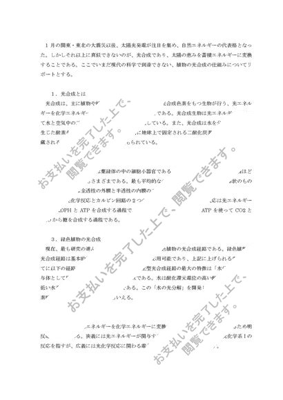 生物学:大阪芸短リポート、評価【A優】植物の光合成について説明せよ。NJ06~NJ14対応