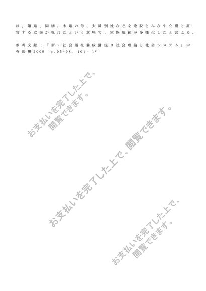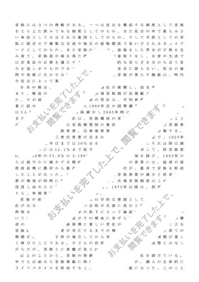 家族の特徴とその変化について説明しなさい。(レポート評価C)