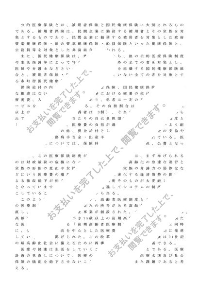 公的医療保険の概要について説明しなさい。(レポート評価B)
