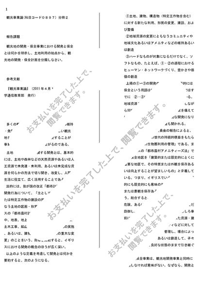 観光事業論分冊2 合格レポート