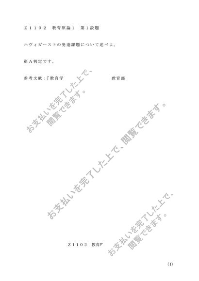 Z1102 教育原論1 第1設題 A評価