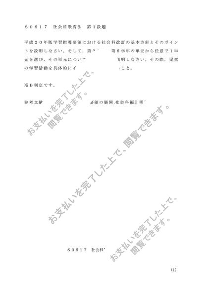 S0617 社会科教育法 第1設題