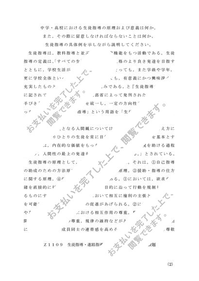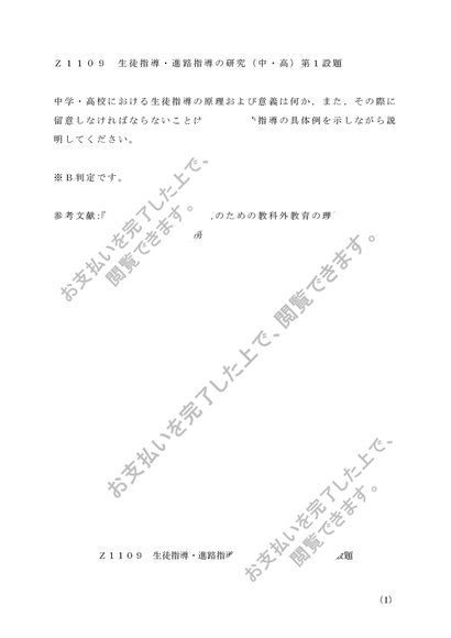 Z1109 生徒指導・進路指導の研究(中・高)第1設題