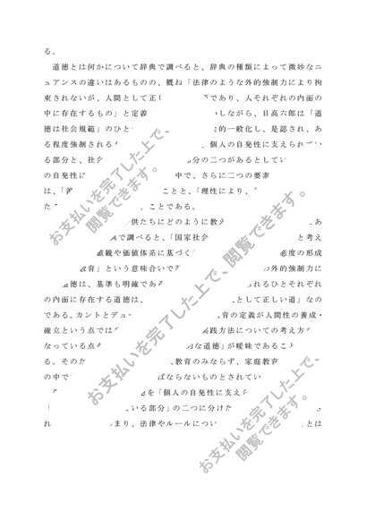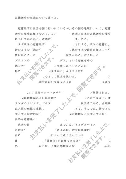 Z1106 道徳教育の研究 レポート(A判定、合格済み)