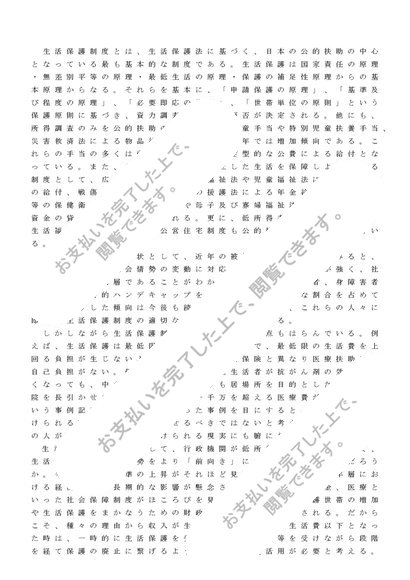 利用者の立場で考えた時、現在の生活保護制度での課題(レポート評価A)