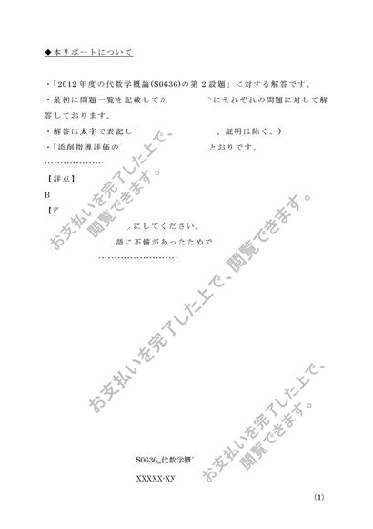 【佛教大学】【2012年度レポート(B判定)】S0636_代数学概論_第2設題