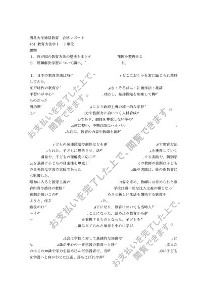 451 教育方法学Ⅰ 1単位目 合格レポート 2012年度