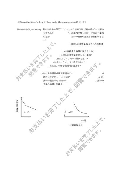 Bioavailability of a drugとArea under the concentrationと薬理作用機序について