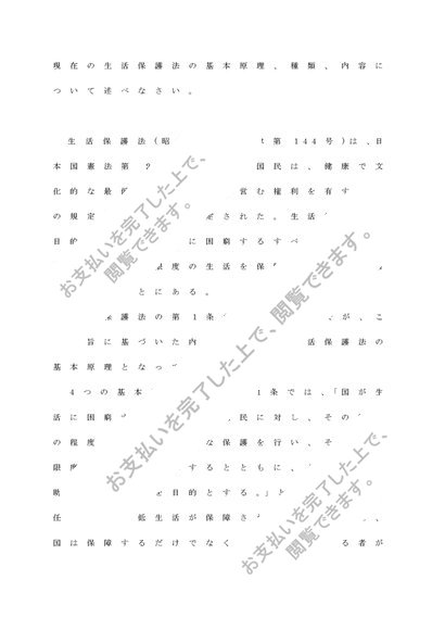 生活保護法の基本原理、種類、内容について