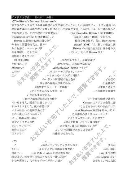 【日大通信】アメリカ文学史Ⅰ(分冊1) 合格レポート