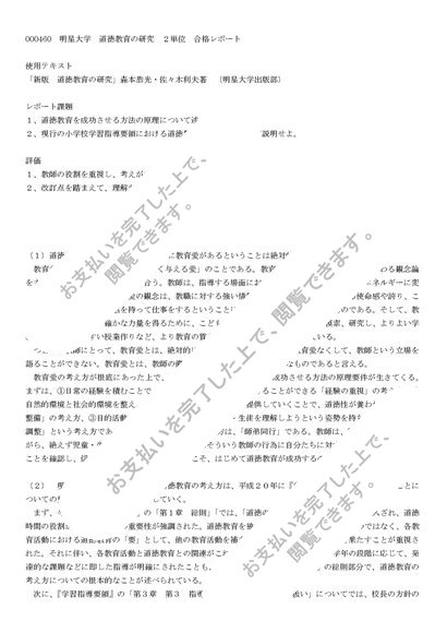 460 明星大学 道徳教育の研究 2単位合格レポート