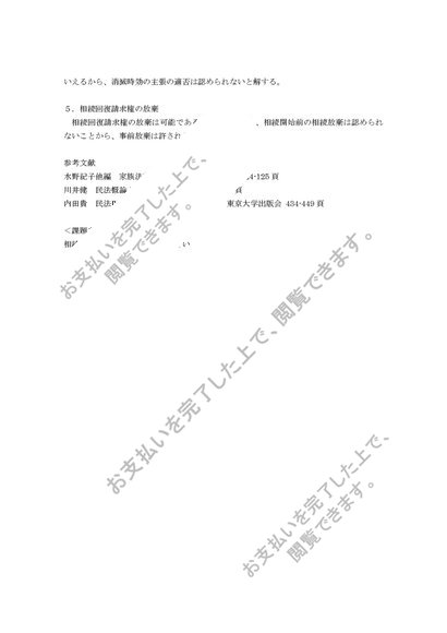 中央大学 通信教育 2012年度 民法5(親族・相続) 第4課題 合格レポート