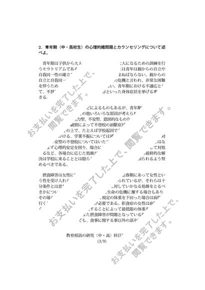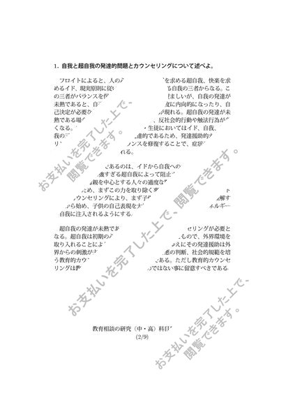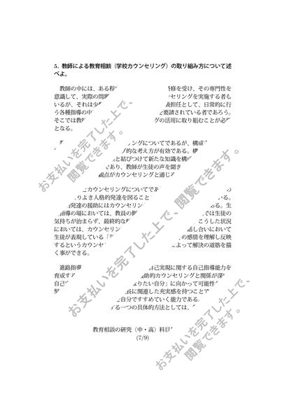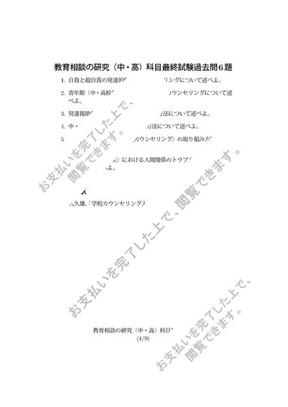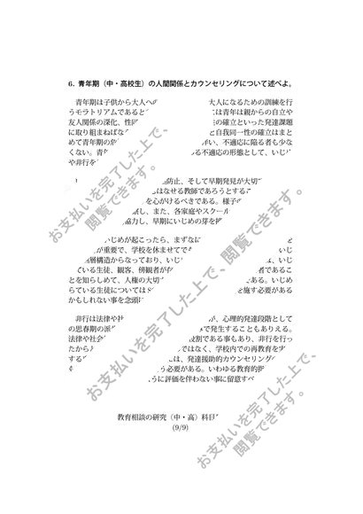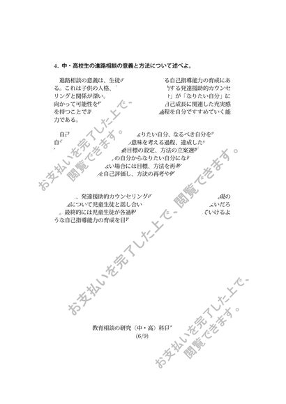 S0541 教育相談の研究(中・高)科目最終試験6題解答例