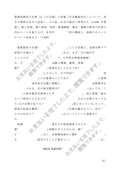 佛教大学 S0618「算数科教育法」A判定リポート