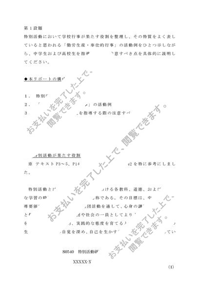 【佛教大学】【2012年度レポート(B判定)】S0540_特別活動研究(中・高)