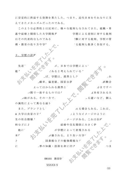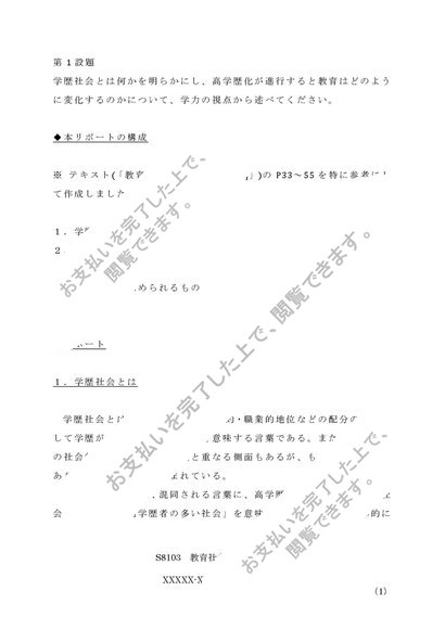 【佛教大学】【2012年度レポート(A判定)】S8103_教育社会学1