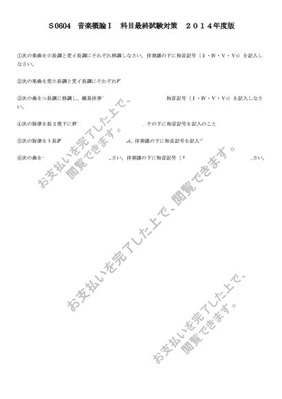 S0604 音楽概論Ⅰ 科目最終試験 2015年度版 全6問 暫定版・最新 95点