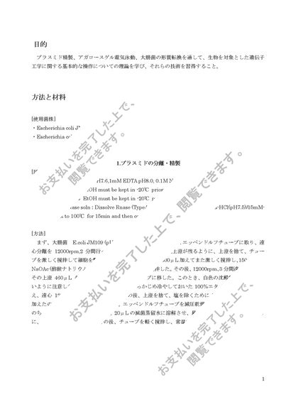 応用微生物学実験_プラスミド抽出・精製とアガロース電気泳動および大腸菌の形質転換
