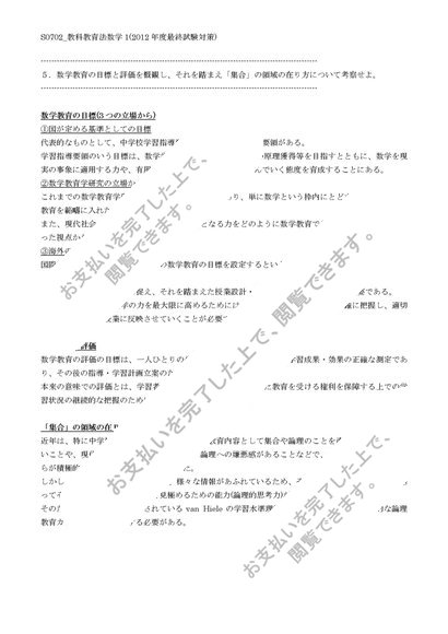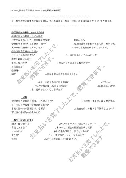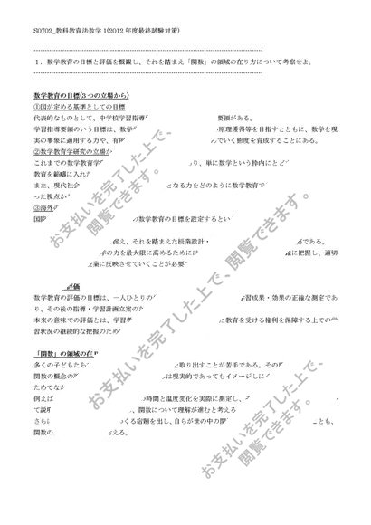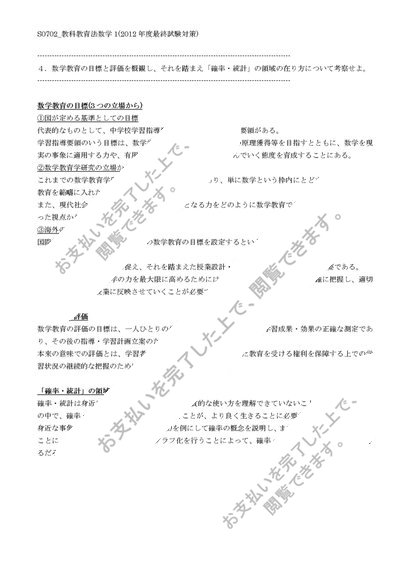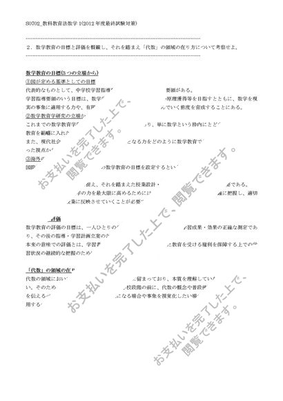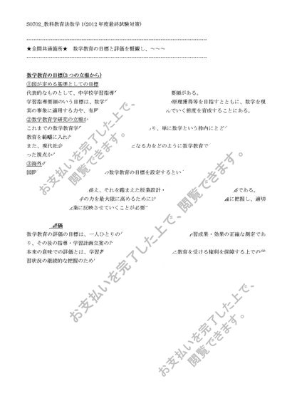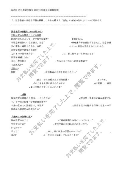 【佛教大学】【2012年度科目最終試験対策】S0702_教科教育法数学1