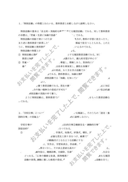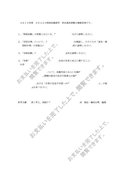 2012年度 特別活動研究 科目最終試験6題 合格済み