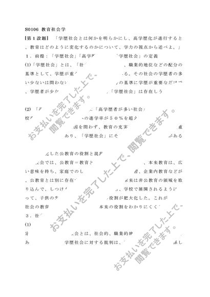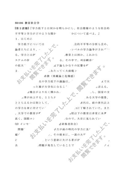 教育社会学(S0106) 第1設題 第2設題セット 2012年 リポート 佛教大学