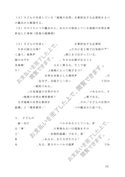 S8105 理科教育法Ⅱ 第1設題 合格レポート