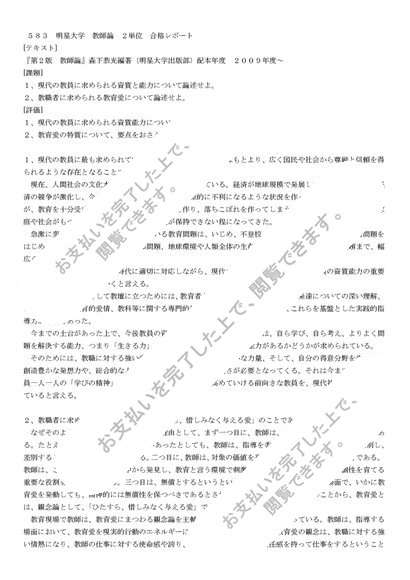 583 明星大学 教師論 2単位合格レポート