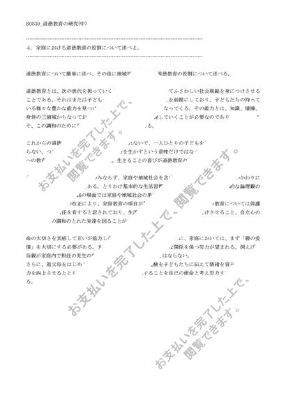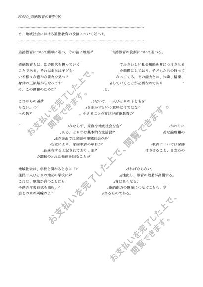 【佛教大学】【2012年度科目最終試験対策】S0539_道徳教育の研究(中)