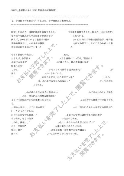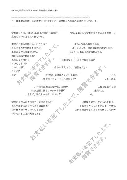【佛教大学】【2012年度科目最終試験対策】S8103_教育社会学1