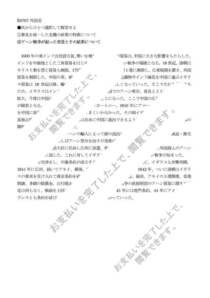 R0707 外国史 科目最終試験 解答例
