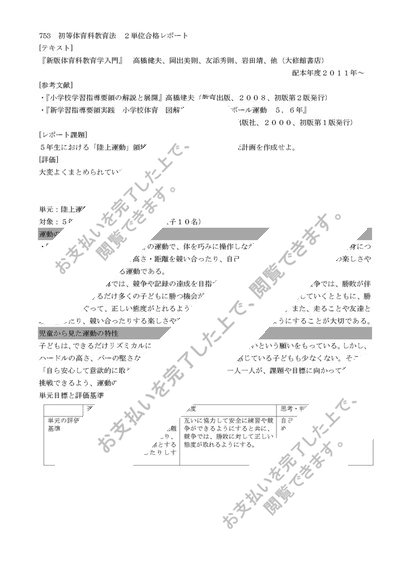 753 明星大学 初等体育科教育法 2単位合格レポート