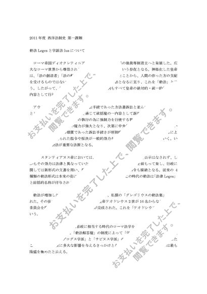 中央大学 2011年度 西洋法制史 第一課題
