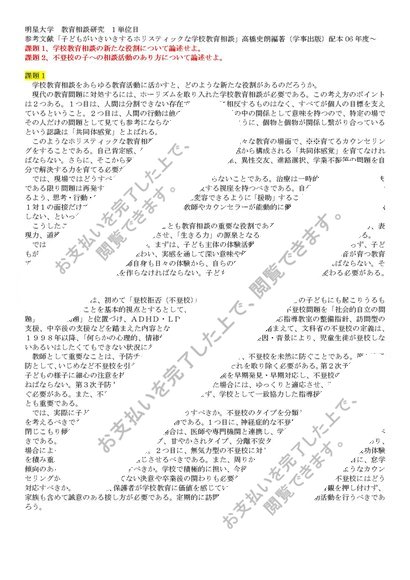【教育相談研究】 1・2単位分 明星大学 レポート 571 ★お買い得★