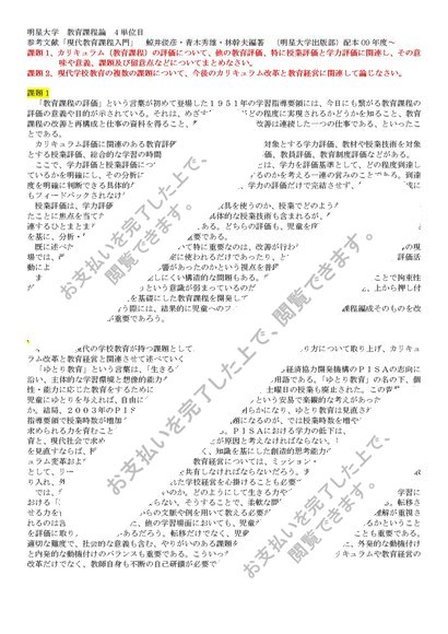 【教育課程論】 4単位分 明星大学 合格レポート ★お買い得★