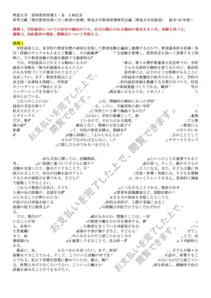 【初等教育原理Ⅰ・Ⅱ】 4単位分セット 明星大学 合格レポート ★お買い得★