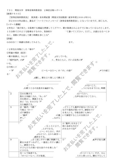 751 明星大学 初等音楽科教育法 2単位合格レポート