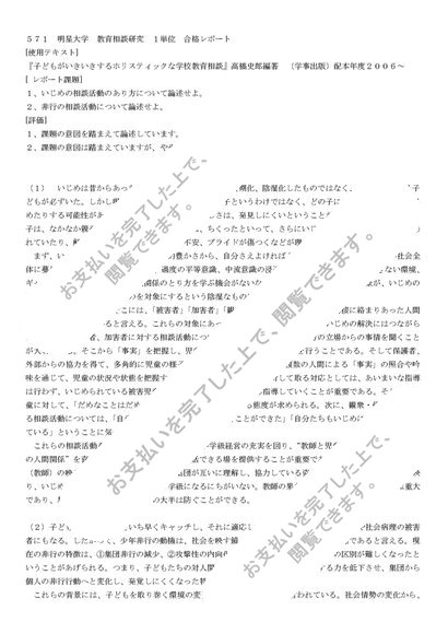 571 明星大学 教育相談研究 2単位 合格レポート