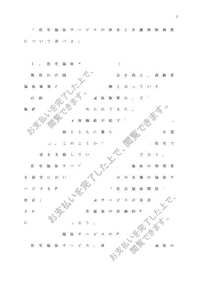 高齢者福祉論 B+判定「在宅福祉サービスの体系と介護保険制度について述べよ」おまけ科目終