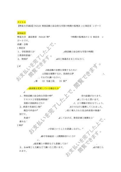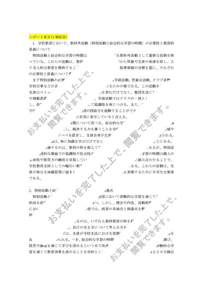 【明星大学通信】PA3120 特別活動と総合的な学習の時間の指導法 1+2単位目 レポート
