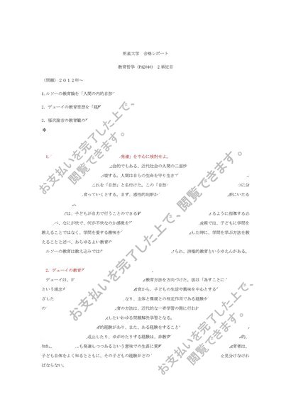 明星大学(通信)教育哲学(PA2040)2単位目 合格レポート