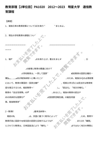 教育原理【2単位目】PA1020 2012〜2023 明星大学 通信教育課程