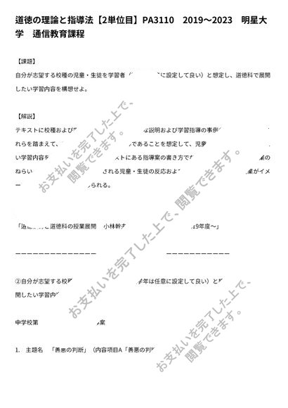 道徳の理論と指導法【2単位目】PA3110 2019〜2023 明星大学 通信教育課程