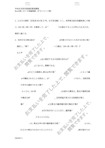 中央大学 2023年度 商法(会社法) レポート課題 第3課題