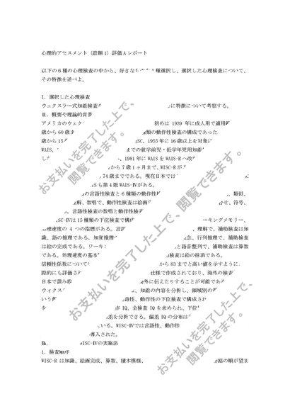 心理的アセスメント【設題1】評価Aレポート