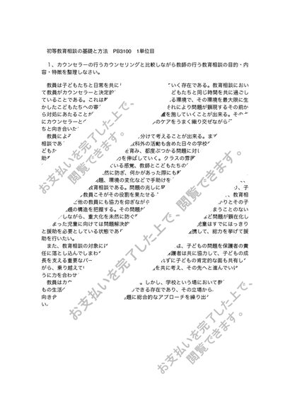 初等教育相談の基礎と方法 PB3100 1単位目 合格レポート