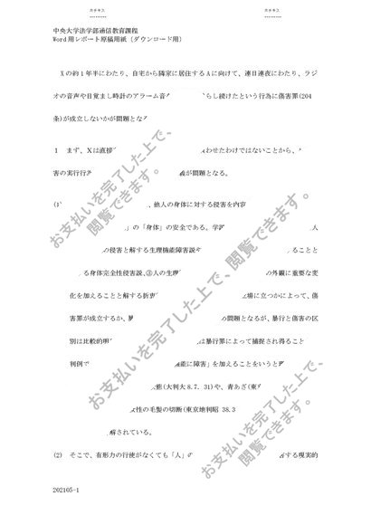 中央大学法学部通信教育課程 中大通教2021年度刑法各論 第1課題 B評価