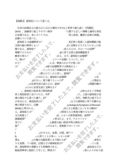 【A評価】人体の構造と機能及び疾病(東京福祉大学)「認知症について述べよ。」