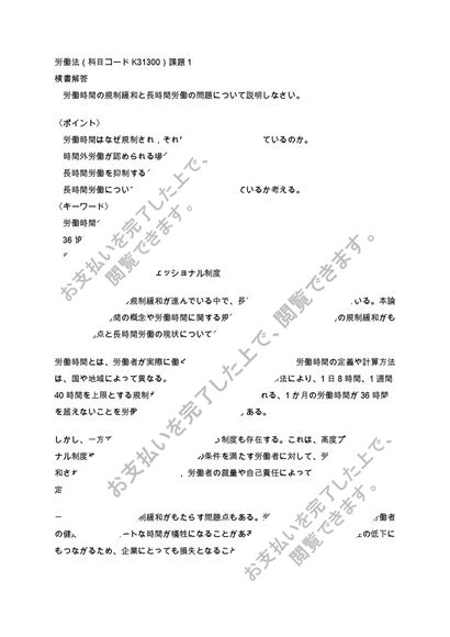 【日大通信】労働法 2023年~2025年(科目コードK31300)課題1