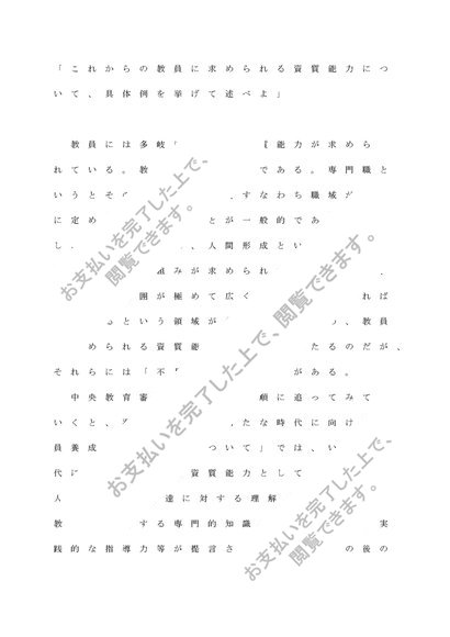 教師論「これからの教員に求められる資質能力について、具体例を挙げて述べよ」(A判定レポート課題)