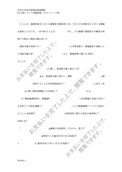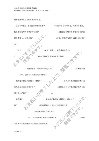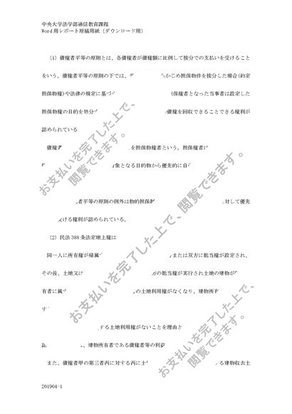 中央大学 2020年 民法2 (物権) 第2課題 A評価